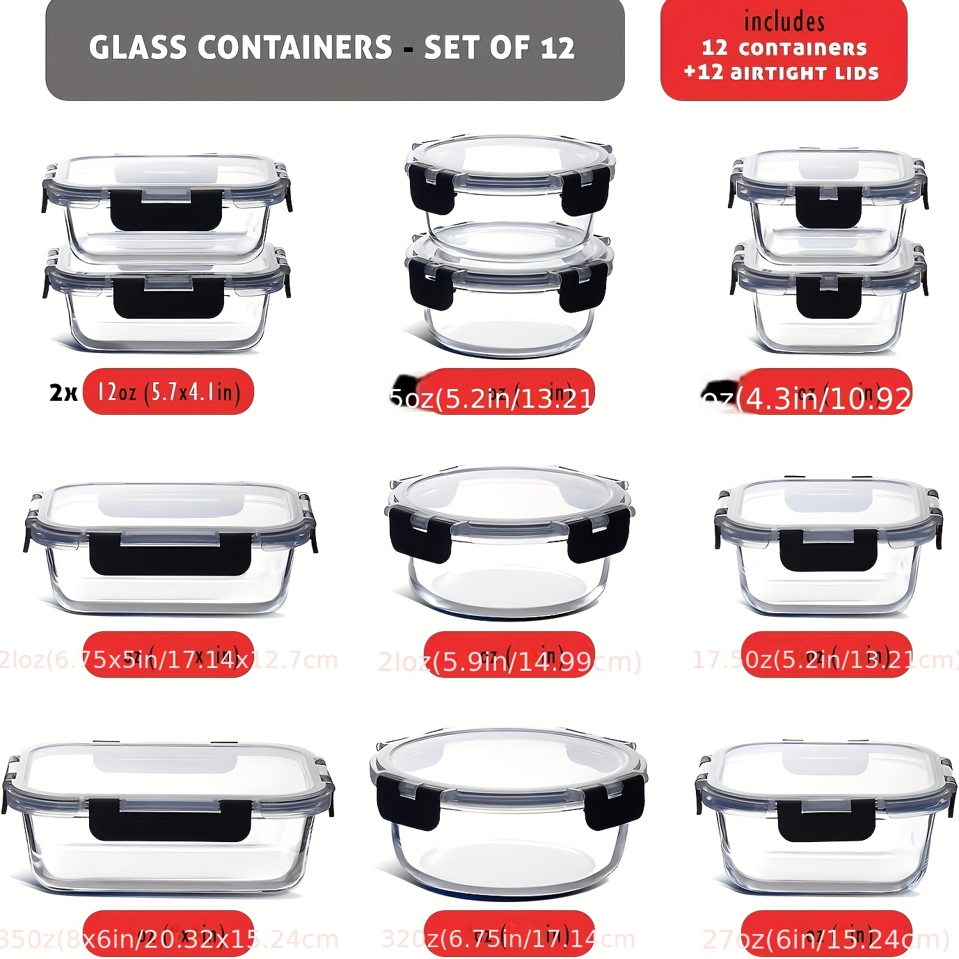 12pcs Glass Food Storage Containers with Lids – Leak-Proof, BPA-Free, Airtight Glass Meal Prep Containers – Microwave, Freezer, Dishwasher Safe – Stackable Glass Lunch Containers for Food Storage