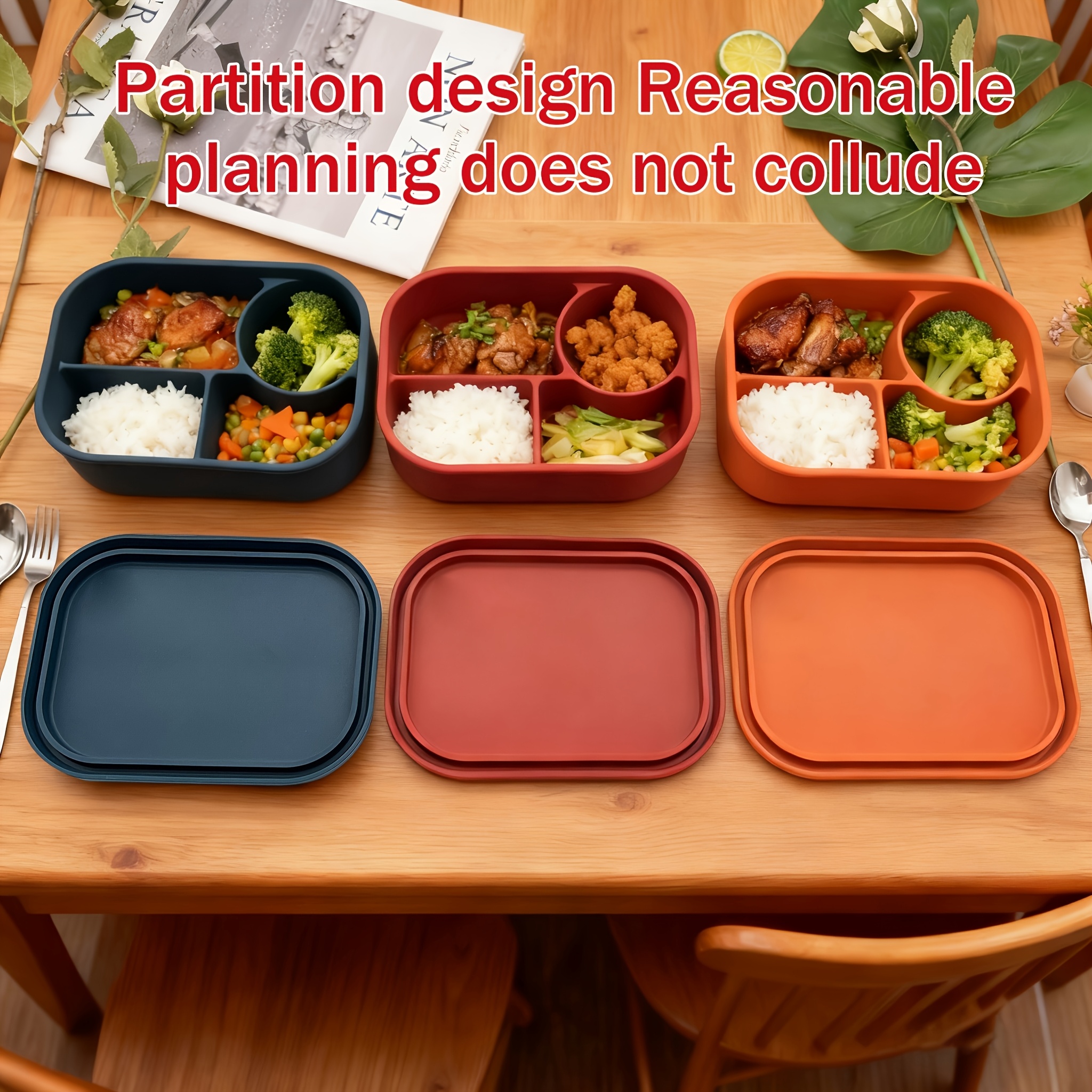 1pc Microwave-Safe Silicone Bento Box, Heat- and Anti-Scalding, Easy to Handle Without Burning Hands, Compartmentalized Design Prevents Flavor Mixing, Preserves Original Taste for Better Experience