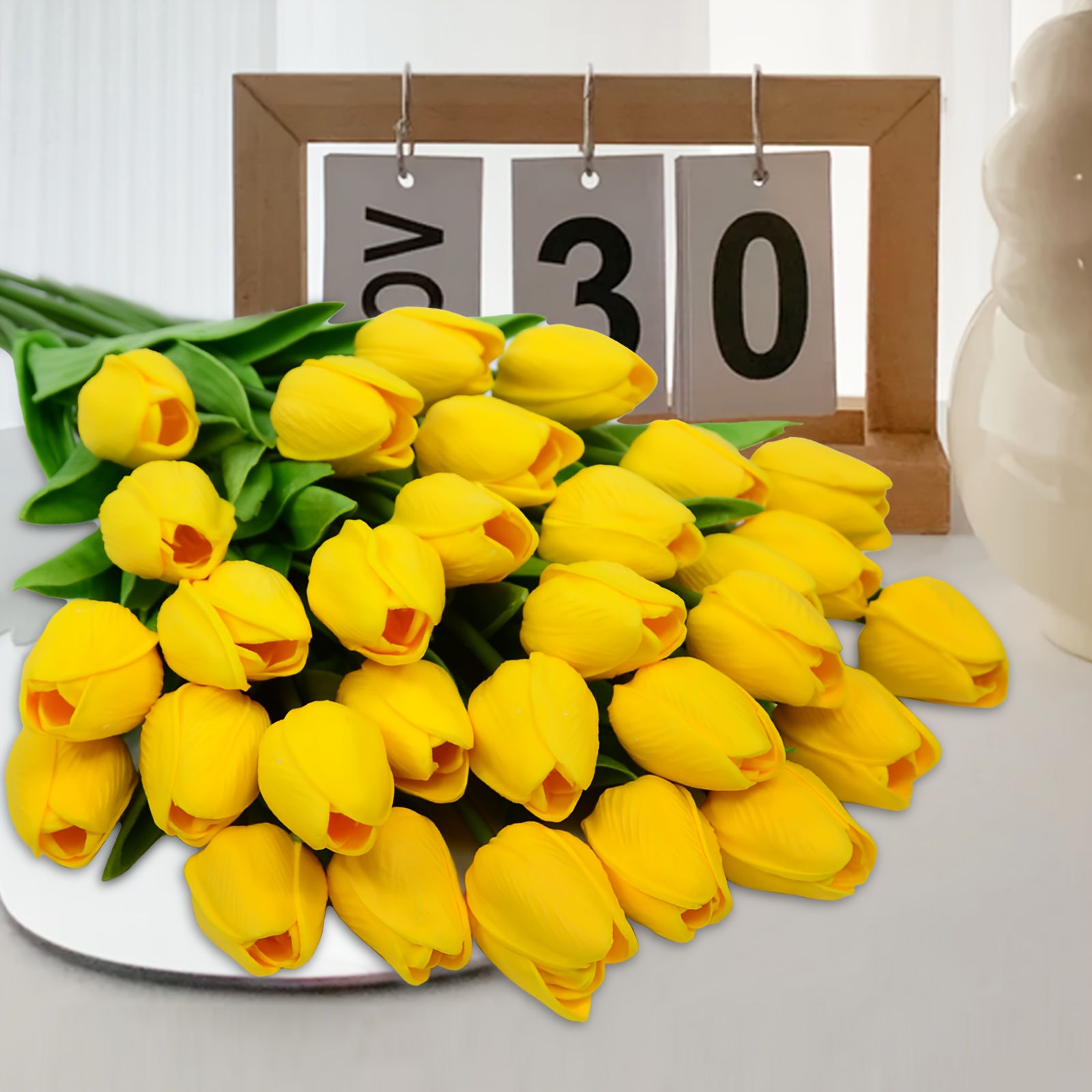 24pcs Vibrant Artificial Tulips Bouquet is designed to add decorative character to living rooms, bedrooms, shelves, desks, entryways, and gift displays. It works well as a floral accent, figurine, collectible piece, candle display, or seasonal styling item while remaining easy to place and maintain.