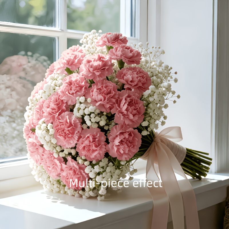28pcs Artificial Simulation Flowers High Quality Romantic Beautiful Pink White Bouquet with Pink Carnation, White ‘S Breath Perfect for Home Decor, Holiday Decor, Wedding Decor, Wedding Handheld Bouquet, Gift, Store Decor, Restaurant Decor