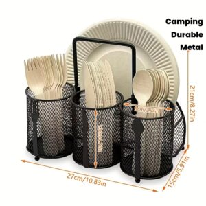 4-Compartment Metal Cutlery Rack with Black Mesh Design – Durable Iron Kitchen Organizer for Spoons, Forks, Plates, and Utensils, Perfect for Camping, Picnics, Picnic Essentials | Modern Kitchen Accessory | Durable Iron Rack, Cutlery Holder