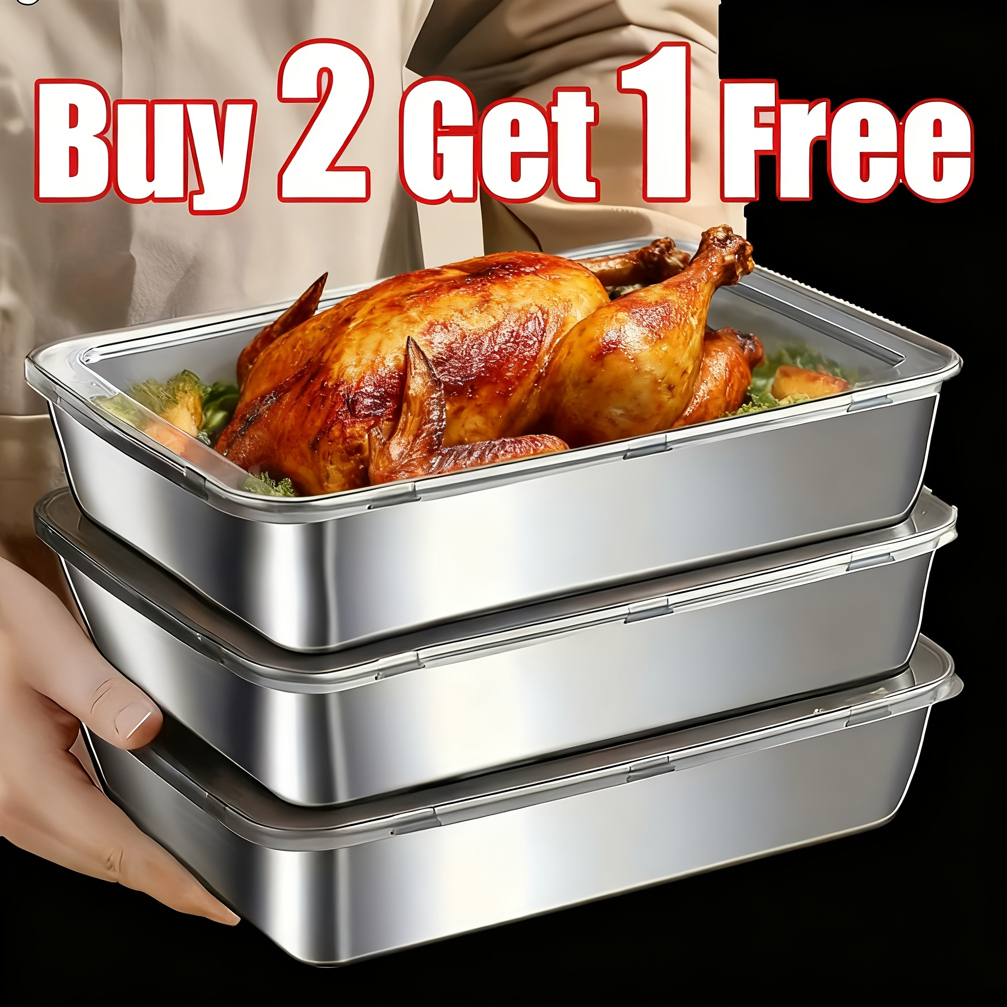 Buy 2 Get 1 Free: 3 Premium Reusable Stainless Steel Food Storage Containers – Airtight Free Lids, Stackable & Dishwasher-Safe, Essential Kitchen Gear for Meal Prep, Picnics, Refrigerator Storage & Cooking