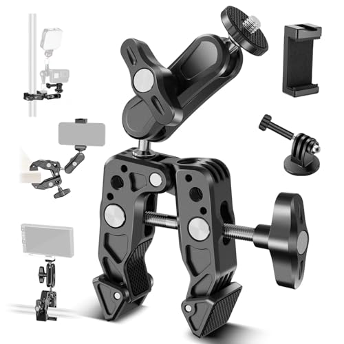 & Free Shipping【Multifunctional Super Clamp】 The super clamp can grip objects 0.5″ – 2.4″ (13 – 60mm) in diameter. To make it applicable to more shapes, the clamp features V grooves and pivot tips, both padded with silicone rubber for increased stability and securing on flat or cylindrical objects like desktops, tripods, shoulder rigs, and bicycle handlebars. Also compatible with DJI Ronin-M Ronin MX & Freefly Movi 25mm and 30mm rods 【For Flat Surfaces & Round Poles】 The super clamp grip objects with a diameter of 0.6″-2.4″/14-60mm, perfect for flat surfaces like desks and tripods, cylindrical objects such as selfie sticks, light/mic stands, shoulder rigs, and bike bicycle motorcycle handlebars and more, and also compatible with DJI Ronin-M Ronin MX & Freefly Movi 25mm and 30mm gimbal stabilizer rods. AD83 kit can mount a cellphone, action camera, webcam, backdrop or other photography videography equipment and accessories 【Multiple Mounting Points】 With 1/4″ threads, ARRI locating points and a built in cold shoe mount, the super clamp and magic arm with ball head can connect numerous accessories like a monitor, shoulder rig, and camera cage. The cold shoe mount for LED fill lights, microphones, and more (The maximum payload is 6.6lb/3.0kg. Not suitable for on camera speedlite flashes) 【Camera & Phone Photography】 Clamp your smartphone (2.2-3.3″/55-85mm in width) with the phone holder, or mount your action camera with included adapters and attachments. AD83 accessories kit for bike/motorcycle is compatible with iPhone 15 Pro Max iphone 14 13 Plus compatible with Samsung Galaxy S22 S23 S24 Ultra compatible with GoPro Hero 12 go pro hero 11 10 9 8 7 Black compatible with DJI Osmo Action 4 3 compatible with Insta360 x3 x4 insta 360 ace pro compatible with mevo start etc. 【Heavy Duty and Scratch Resistant】 Aluminum alloy and stainless steel metal hybrid material with precise CNC machining makes this phone and camera photography gear robust. Nonslip rubber pads on the clamp and the device mounting plate can increase stability and protect your equipment against scratches. Compatible with small rig magic arms compatible with manfrotto magic arms via the 1/4″ threaded holes
