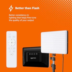 Introducing the Amazon Basics LED Light panel, the perfect choice for aspiring photographers and videographers. It comes with a sleek remote controller that allows you to adjust the light settings in a hassle-free manner. The LED lights also offer better light consistency over the conventional flash, improving the quality of your output. The 240 SMD lamp beads disperse light evenly and reduce glare. This light is good for interviews, baby photography, conferences as well as for content creation.