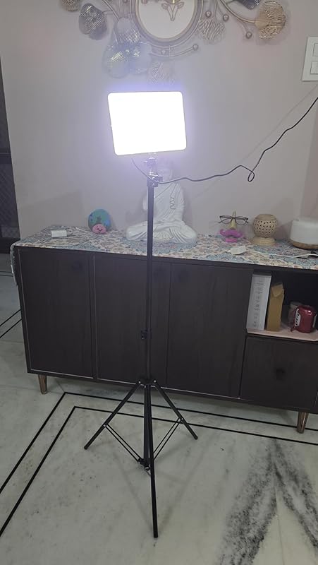 This studio light delivers excellent brightness with soft, even coverage, making it perfect for photos and videos. It covers the shooting area beautifully without harsh shadows. The light quality enhances colors and gives a professional look, especially for iPhone shoots and content creation. The stand is sturdy and easy to adjust for different angles. Build quality feels strong and reliable. Overall, it’s a great value for money and highly recommended for anyone looking to upgrade their studio setup.