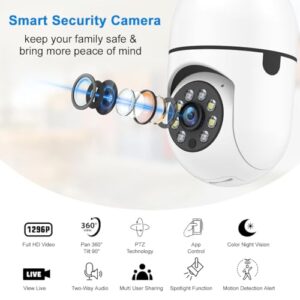 [3MP (1296p) Full-HD Resolution]: IFITech Bulb Security Camera offers 1296p (3MP) Full HD recording ensures clear, high-definition video with detailed footage.