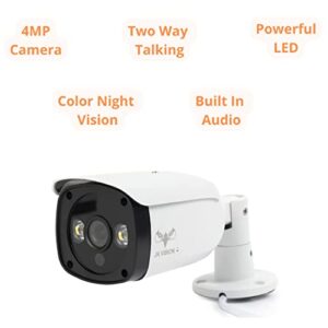 High-definition 4MP cameras with color night vision and a 30-meter range for clear surveillance, even in low light.