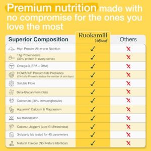 10 reviews for Buy Ruokamill Kids Nutrition Mix | Age 4-12 | Supports Growth, Brain Development & Immunity |30 Nutrients, 11g Protein, Omega-3 (EPA & DHA), 1.1B CFU Probiotics | No Refined Sugar | (400g, Chocolate) Online at Low Prices in India – Amazon.in