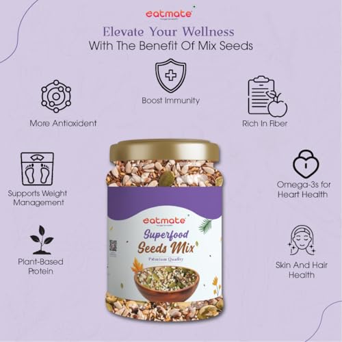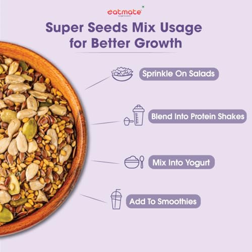 Eatmate Superfood Premium, Mix Seeds for Eating – 500 Grams| Diet Snacks | Protein Rich Food Healthy Snack | Mix of Pumpkin, Sunflower, Flax, Chia, Sesame, Watermelon Seeds Amazon.in: Grocery & Gourmet Foods