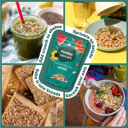 Farmley Seeds Mix, 160g each Edible Seed I Healthy Diet Snacks, omega-3s,dietary fiber | 100% Natural I Chia,Pumpkin,Flax,Watermelon and Sunflower Seeds. Amazon.in: Grocery & Gourmet Foods