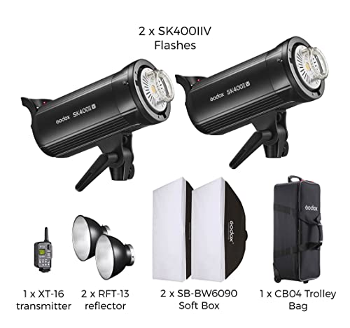 2 x Godox SK400II-V Studio Flash Monolight, Godox CB-04 Hard Carrying Case with Wheels, 2 x Softbox with Speed Ring (24 x 36"), Wireless Power-control Flash Trigger XT-16, 2 x RFT-13 Reflector