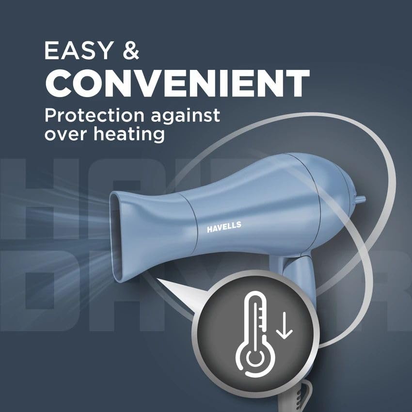 Havells 1000W Foldable Hair Dryer | 2 Heat Settings (Hot/Warm) | Heat Balance Technology | Pastel Blue | Your Perfect Blow Dry Companion For Effortless Hair Styling | HD1835 Amazon.in: Beauty
