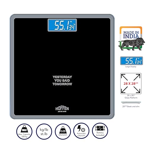 Hoffen (Made In India) Thick Tempered Glass Digital Electronic LCD Personal Body Weight Machine for Body Weight Fitness (HO-18-Black) with Two Years Warranty Amazon.in: Health & Personal Care