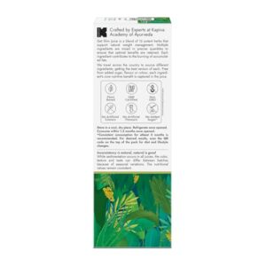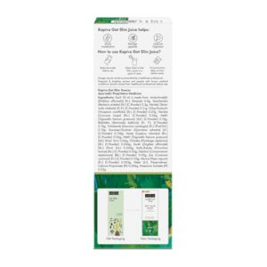 About this item ROBUST BLEND OF 12 POTENT HERBS: Kapiva Get Slim Juice is loaded with the goodness of 12 ayurvedic herbs like San Beej, Erandmool, Daruharidr. Instead of using extracts, we use raw Ayurvedic herbs in our juice for optimal health benefits PROMOTES WEIGHT MANAGEMENT: Our Get Slim juice enhances the functioning of the digestive system. Regular consumption of the juice can cure digestive ailments. It also acts as a metabolism booster HELPS IN DIGESTION: Proper digestion helps in promoting healthy weight management and helps in boosting faster metabolism 100% NATURAL & 100% AYURVEDIC: Kapiva Get Slim juice does not contain any added sugar, artificial taste-enhancers, and chemicals. It is made in GMP-certified facilities. We pack nutritious herbs for you in this bottle to boost your health and wellness