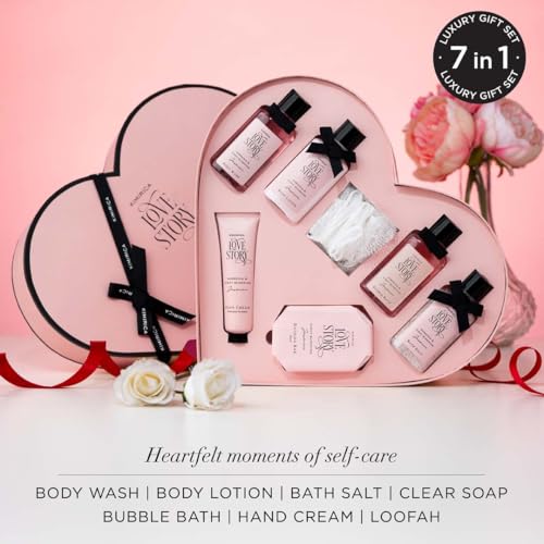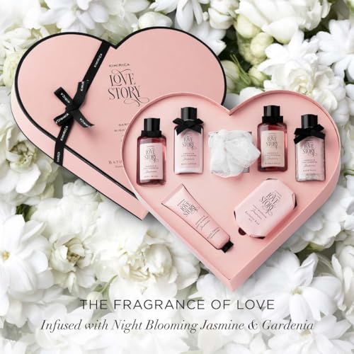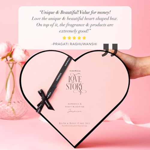 & Free ShippingAbout this item GIFT OF LOVED ONE’S- An adorable gift set for all those little things you do in love! Kimirica Love Story Moments Gift Set is here to enhance every little moment of your life.Infused with romantic notes of Gardenia and Night Blooming Jasmine these self-care products are sure to transport you to a romantic escapade. PREMIUM BEAUTY GIFTING BOX, BOLD TEAL PACKAGING- This gift set is boxed and ribboned up luxuriously to celebrate surprises, making it an ideal gifting option for you and your loved ones. MOMENTS GIFT BOX- Unveil your love story, one moment at a time, with the Love Story Moments Gift Box – because your love deserves to be celebrated in the most magical way. REASONS OF LOVE- Beautifully packed gift box with a ribbon, 7 self-care essentials , Infused with alluring notes of Gardenia & White Blooming Jasmine , Enriched with nourishing plant-based ingredients & Ideal gift set for couples, especially for valentines BOX CONTAINS- Love Story Bubble Bath, Love Story Body Wash , Love Story Body Lotion,Love Story Bath Salt ,Love Story Hand Cream , Love Story Bathing Bar & Loofah