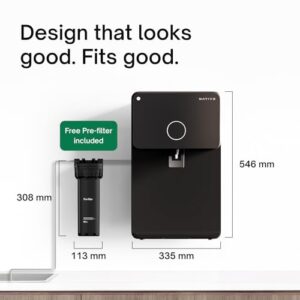 𝟖-𝐋𝐢𝐭𝐫𝐞 𝐒𝐭𝐨𝐫𝐚𝐠𝐞: Perfect capacity for a family of 4. The food-grade tank keeps water mineral-enriched and safe for consumption. 𝐖𝐨𝐫𝐤𝐬 𝐰𝐢𝐭𝐡 𝐀𝐥𝐥 𝐖𝐚𝐭𝐞𝐫 𝐒𝐨𝐮𝐫𝐜𝐞𝐬: Tanker, borewell, municipal and tap water – universal compatibility for any home 𝐁𝐨𝐱 𝐂𝐨𝐧𝐭𝐞𝐧𝐭𝐬: Water Purifier, Pre-filter, power adapter, installation kit & TDS meter Show More › See more product details