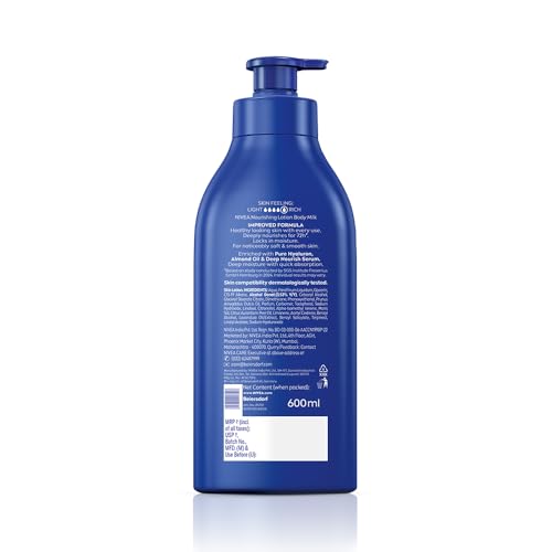 NIVEA Nourishing Body Milk 600ml Body Lotion with Hyaluronic Acid | 72Hr Hydration | Deep Moisture Care for Very Dry Skin | Enriched with Almond Oil | Smooth, Radiant & Healthy Looking Skin Care Amazon.in: Fashion