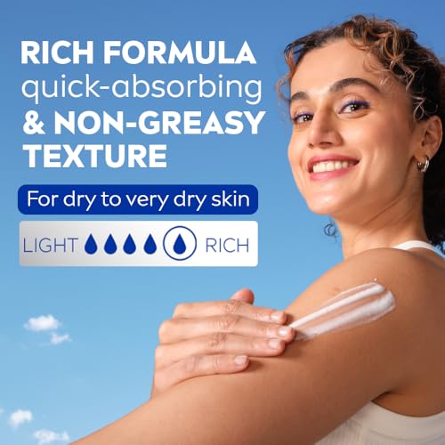 Experience intense moisture and lasting freshness with NIVEA Nourishing Body Milk Body Lotion enriched with Pure Hyaluronic Acid to deliver up to 72-hour hydration to extra dry and sensitive skin. This body lotion blends skin-softening Almond Oil and a Deep Moisture Serum that penetrates deeply to replenish moisture lost from daily wear and environmental stressors. From the very first application, dry patches become visibly smoother; skin feels nourished, calm and supple. The gentle formula, dermatologically tested, suits sensitive skin types and leaves no greasy residue—just silky softness and a healthy glow. Ideal for those who use soaps or lighter lotions that just don’t cut it, this body milk steps up your skincare routine. Whether after bath, before bed, or for daily care, it helps prevent dryness and supports skin’s natural moisture barrier. Key Benefits: Deep nourishment for very dry, sensitive skin! Long-lasting 72Hr hydration thanks to new formula with Pure Hyaluron Restores softness and smoothness with Almond Oil & Deep Moisture Serum Lightweight feel, non-greasy finish, and skin comfort Ideal for daily use: Apply daily for intensive moisture care & to reduce roughness of dry skin. Skin Type: It effectively transforms very dry skin to healthy, smooth skin.; Skin compatibility dermatologically approved. Target Gender: Unisex NIVEA, a hundred years of skincare for life!