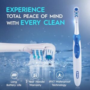 & Free ShippingAbout this item REMOVE 100% MORE PLAQUE – The Oral B Electric Toothbrush features soft crisscross bristles that are gentle on your gums while effectively removing up to 100% more plaque compared to a regular manual toothbrush. Enjoy a thorough and gentle clean every time. DENTIST INSPIRED ROUND BRUSH HEAD reaches areas where rectangular brush heads don’t. Experience elevated oral care from the WORLD’S NO. 1 DENTIST RECOMMENDED BRAND IPX7 WATER RESISTANT TECHNOLOGY – Designed for convenience and versatility, this toothbrush is IPX7 water resistant. You can safely use it in the shower and rinse it under water for easy cleaning. 2 YEAR WARRANTY by Oral-B – This brush comes with a 2-year warranty by Oral-B, providing you with peace of mind and assurance of our product’s durability and high standards.