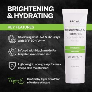 PROWL Brightening and Hydrating Sunscreen SPF 50+ PA++++ with Niacinamide for Oily, Dry, Acne-Prone Skin for Men Sun Protection No White Cast Lightweight Non-Greasy Texture Gel Sweet Musk Scent–50ml Amazon.in: Beauty