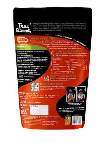 True Elements Rolled Oats 2kg – Diet Food | Jumbo Oats 1kg (Buy 1 Get 1 FREE) | Gluten Free Oats | Rich in Protein | Cereal for Breakfast | High Fibre | 100% Wholegrain Amazon.in: Grocery & Gourmet Foods