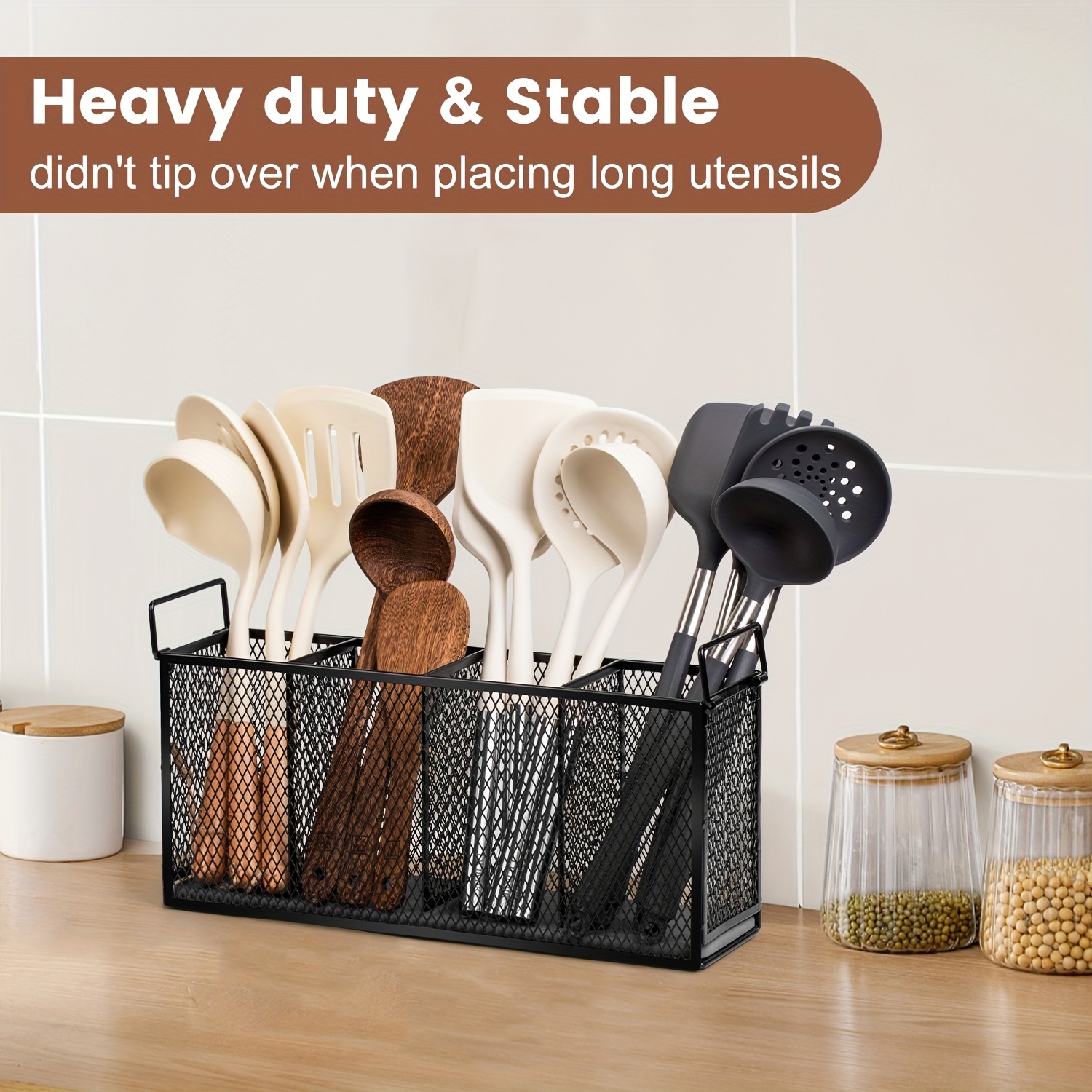Wetheny Kitchen Utensil Holder with Diatomaceous Earth Base, Large Utensil Holder for Kitchen Counter, Black Kitchen Cooking Utensil Holder Organizer with 4 Compartments